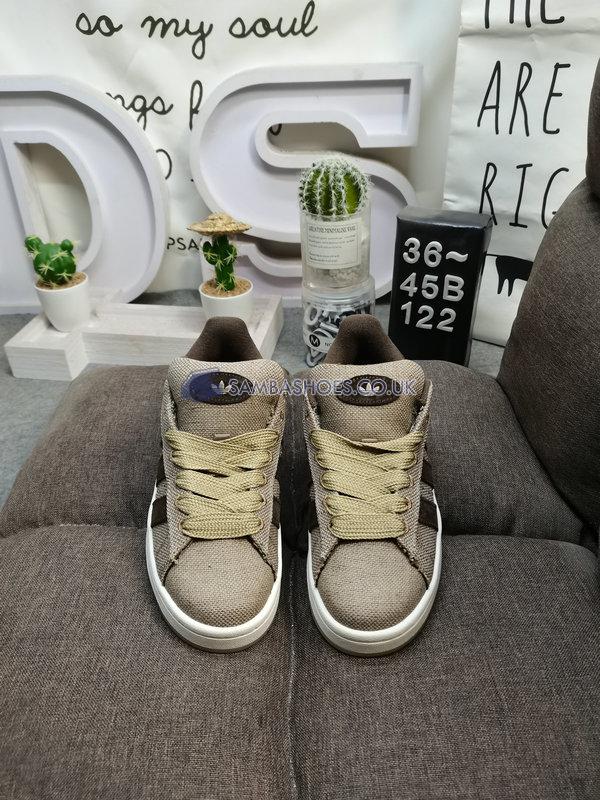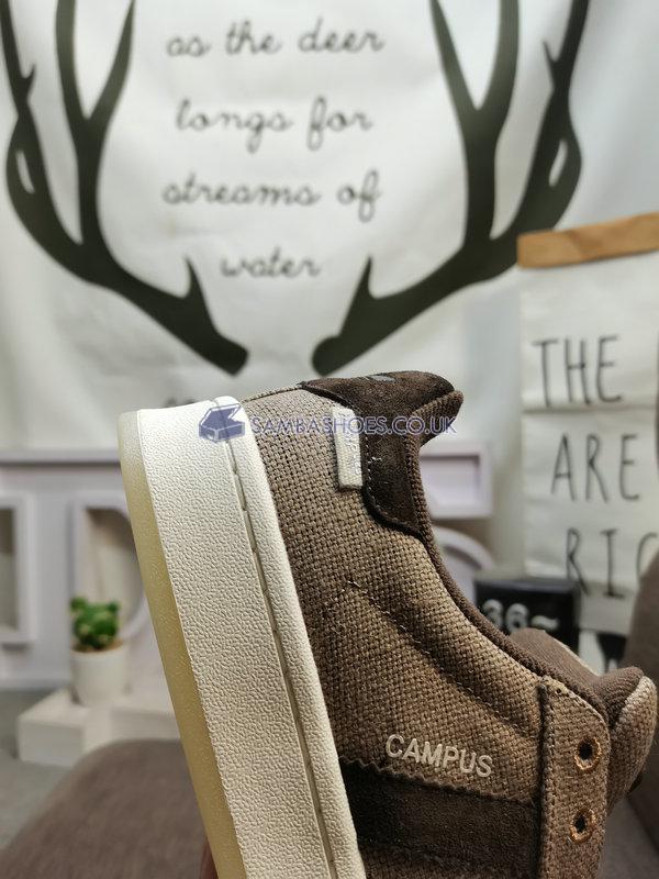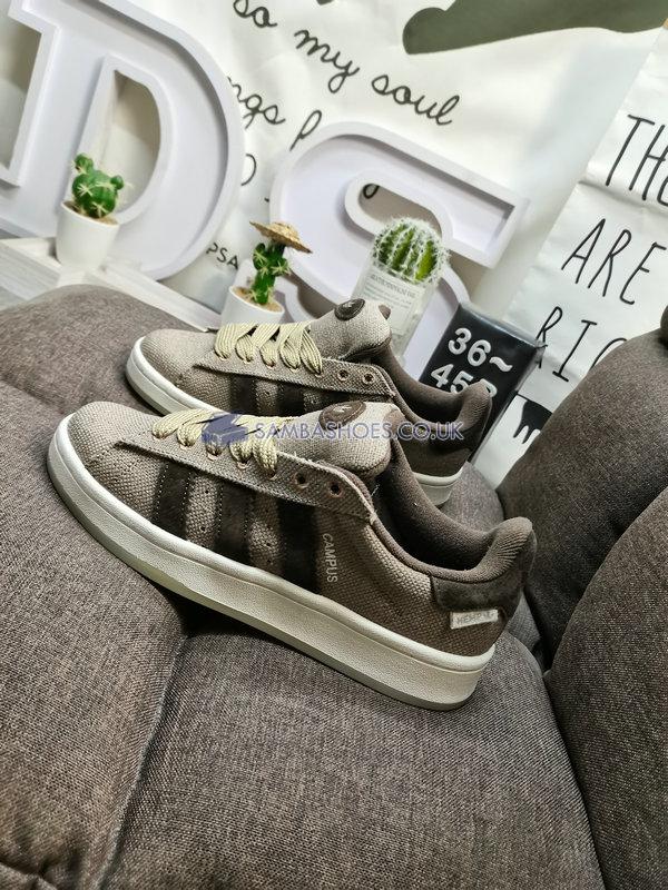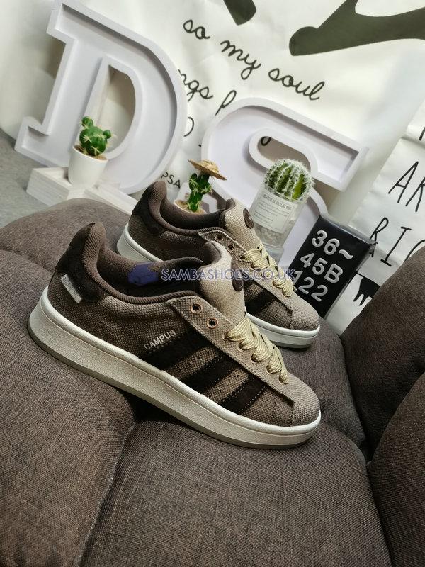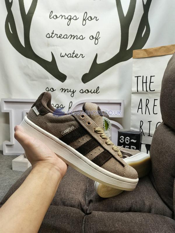 This is the Campus 00S Tko Hemp Dark Brown Off White HP6538 by adidas. This pair of low sneakers has adidas branding, an upper made of textile and rubber outsole.