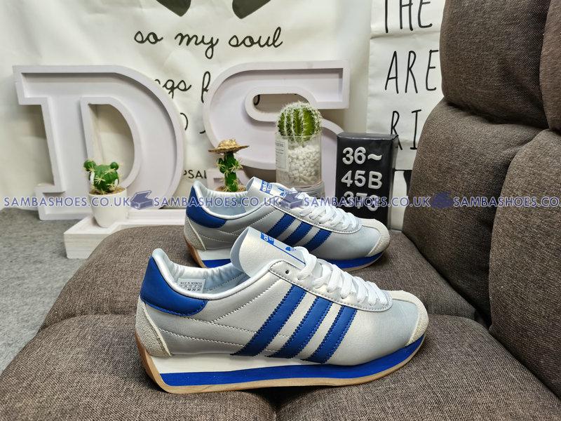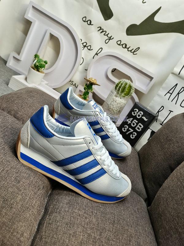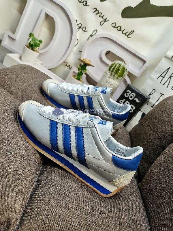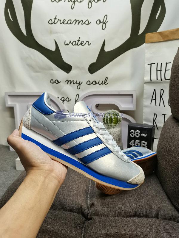 Adidas Country OG Matte Silver Bright Blue  - Matte Silver/Bright Blue/Cloud White - IE4230 Classic Originals Shoes Buy Online
