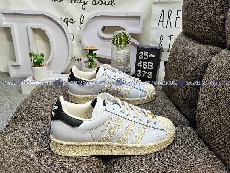 Adidas Superstar Debossed Stripes - Wonder White Black  - Footwear White/Wonder White/Core Black - ID4675 Classic Originals Shoes Buy Online