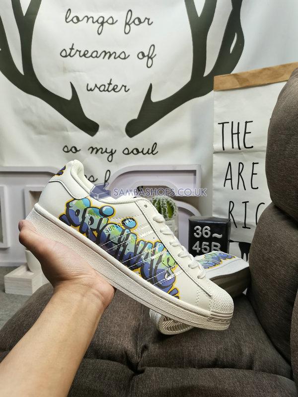 Adidas Superstar "Multi Jagged Stripes" - Cloud White/Night Sky/Green - GW9783 Classic Originals Shoes