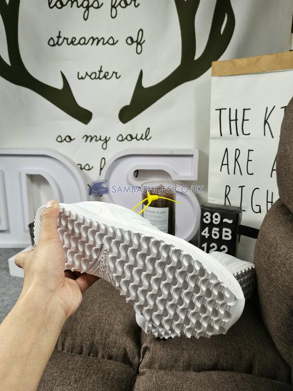 The adidas ZX 750 HD "Cloud White" showcases a pristine finish on a modernized version of the classic ZX running shoe. A breathable mesh upper in Cloud White is fortified with tonal no-sew overlays and a molded TPU heel counter. The monochromatic design is briefly interrupted by vibrant pops of Signal Green on the tongue, heel and lateral forefoot, before picking up again on the lightweight EVA midsole and durable rubber outsole.