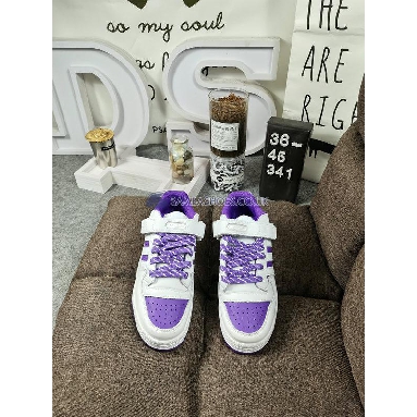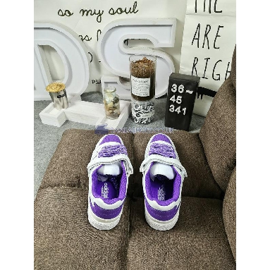 Designed for the NBA star, the Donovan Mitchell x adidas Forum Low 'Collegiate Purple' treats the retro hoops shoe to a simple two-tone design. Traditional laces combine with an adjustable hook-and-loop strap to secure the upper, constructed from Cloud White leather with contrasting violet suede construction on the perforated toe box, serrated three-stripes and stitched heel overlay. The sneaker's lateral side is branded with an adidas Trefoil and Donovan Mitchell's personal logo. Underfoot, the translucent outsole reveals a hectic all-over print composed of multicolor graffiti-style graphics.