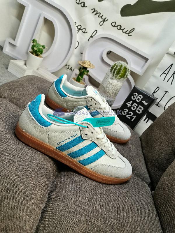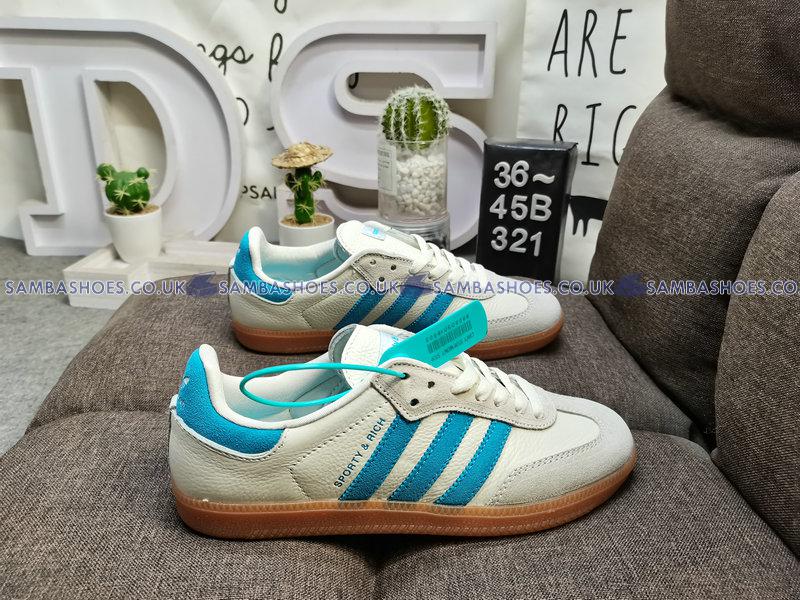 Sporty & Rich x Adidas Samba OG Cream Blue  - Cream White/Blue Rush/Gum - IE7096 Classic Originals Shoes Buy Online